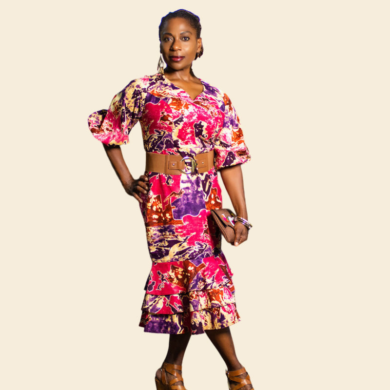 The beauty of this gorgeous pencil midi dress is all in the color hues and intricacies of the African prints! From the flattering pencil cut, flanked with a triple layer ruffled bottom, to the statement puffed sleeves, this dress is perfect for your cocktail or any occasion gathering.