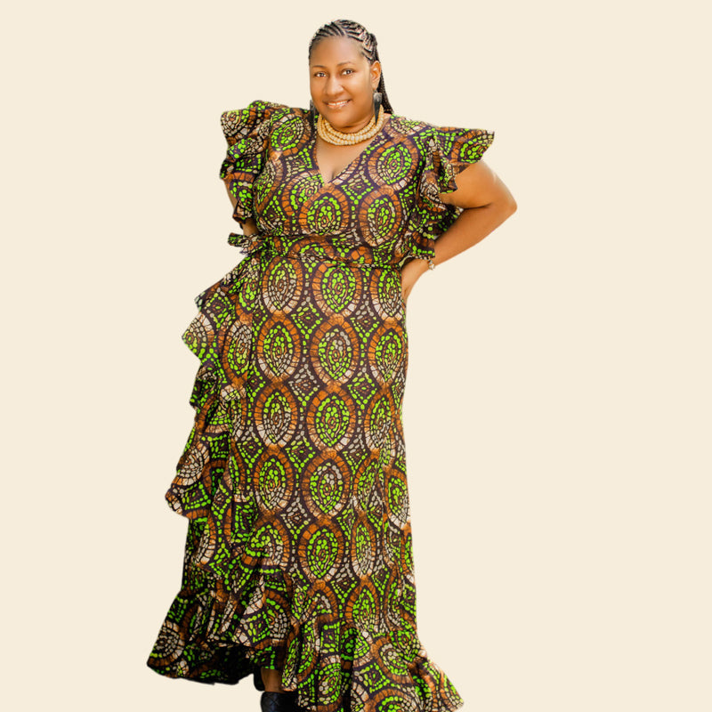 Embrace elegance and vibrant style with our African Ankara Maxi Wrap Dress. Crafted from premium African Ankara fabric, this dress is a celebration of bold patterns and rich colors that reflect the beauty of African heritage.